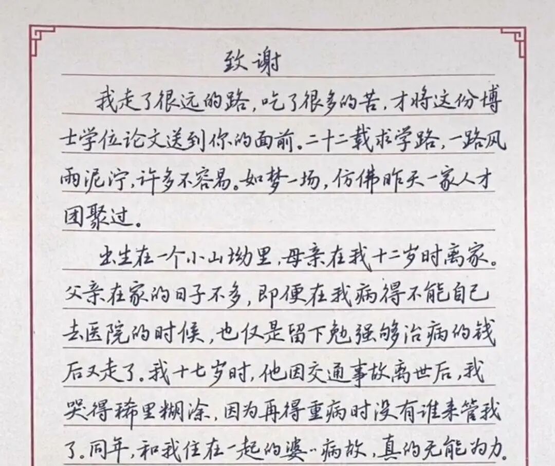 “我走了很远的路,吃了很多的苦,才将这份博士学位论文送到你的面前。