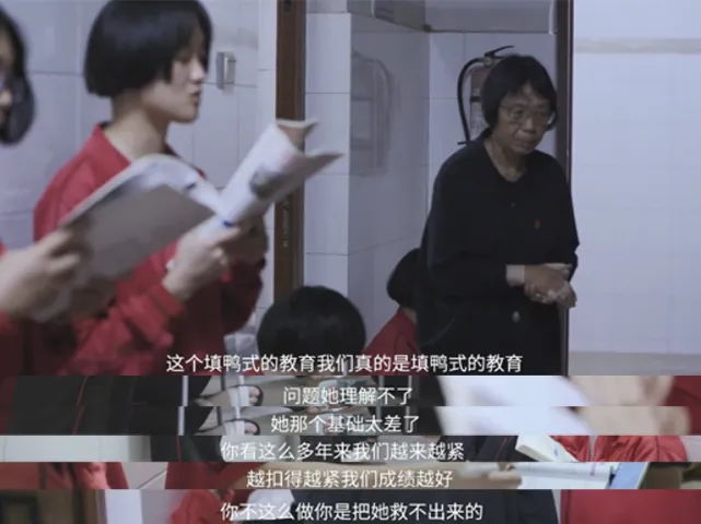 “人家说这个做题对孩子不好,我们没办法呀,我们只有这个办法,看着孩子那个样子我们也难过……但如果我不这么干,我的学生就上不了浙大了,我的学生可以考到浙大、厦大、川大、武大……高考比我的生命还重要,因为高考解决了她们的命运问题,改变了她们生活的轨迹问题,改变了一家三代人的问题……”