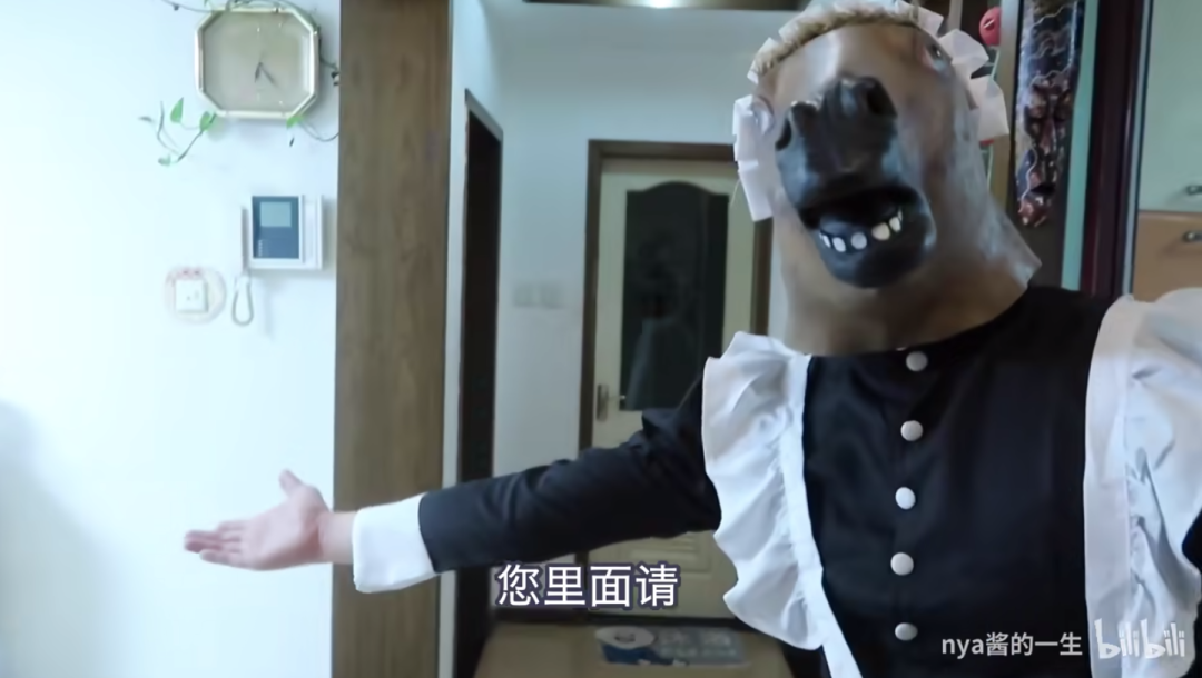 UP主“nya酱的一生”把老公给自己过生日的过程记录下来。视频里,老公戴上“马男”面具,穿上女仆服,给老婆进行了一场沉浸式女仆咖啡店体验。