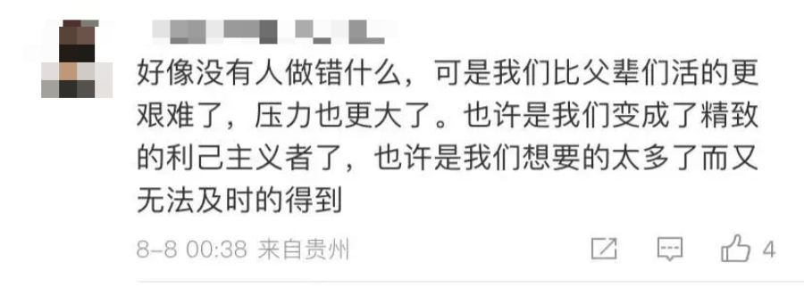 还有人觉得,是生活压力让人只顾得上自己,不再想去追求那些“锦上添花”的东西。