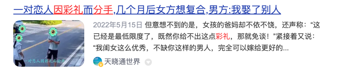 甚至,还有因为彩礼给多少没谈拢而大打出手的。
