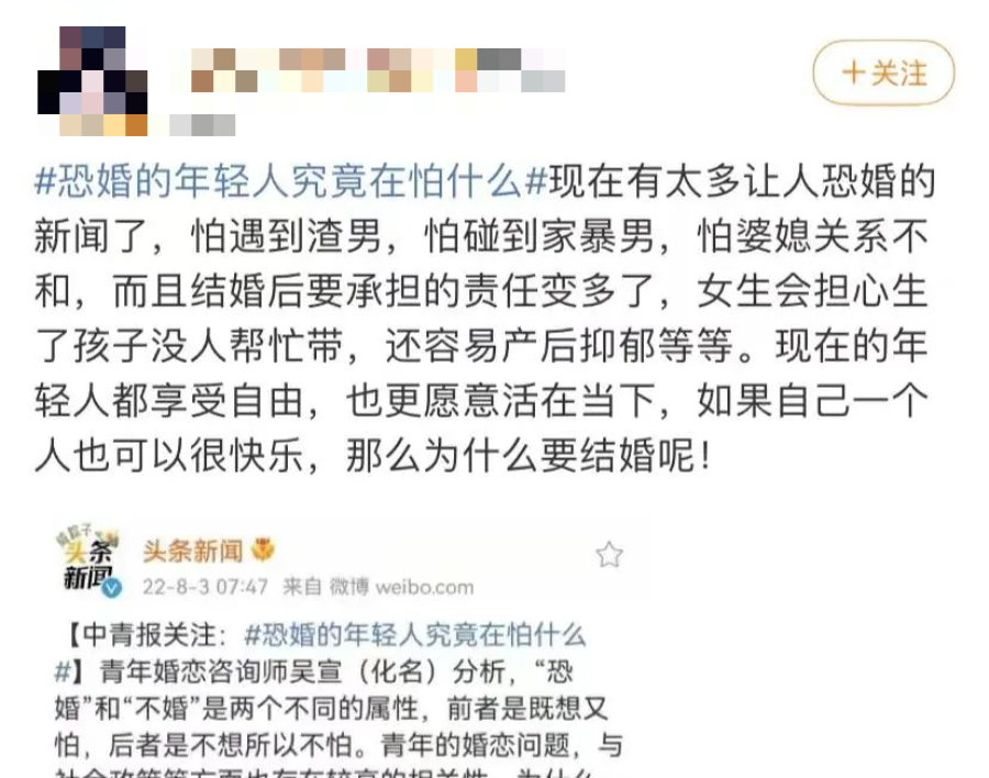 近日,一则话题突然登上热搜:恐婚的年轻人究竟在怕什么?