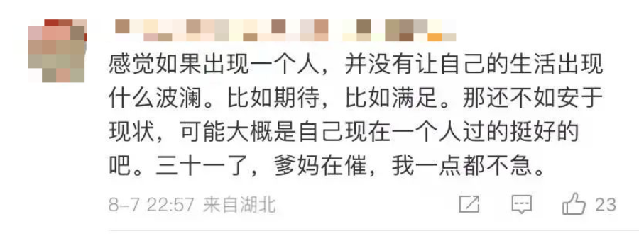 有人认为,自己现在的生活挺好的,不想打破,也不想失去自由。