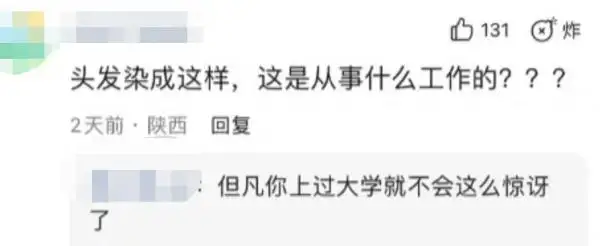 有人攻击她:“一个研究生,把头发染得跟酒吧陪酒的一样。”