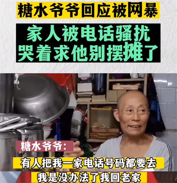 网红糖水爷爷被逼回老家,家人遭牵连,本人流泪:心里像插了把刀