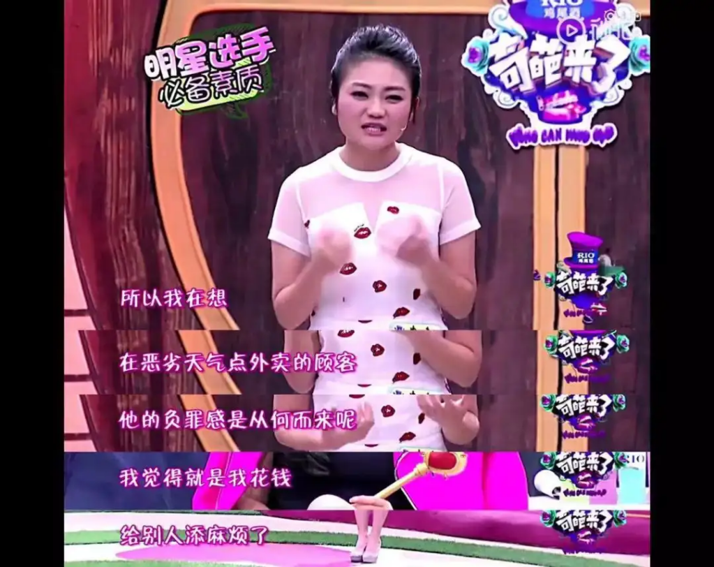 著名辩论节目《奇葩说》里曾有一期的辩题是围绕“该不该在恶劣天气点外卖”这个话题展开的。有辩手说,因为担心冷冷的风雨在脸上狠狠地拍而点外卖,通过花钱把“己所不欲”施于了他人,这就是自己负罪感的来源。