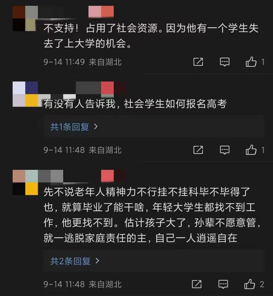 另一派则认为,作为一个“中老年人”,上大学目的只是为了打发时间,而不是为了找工作,因此他上大学就是浪费教育资源的行为: