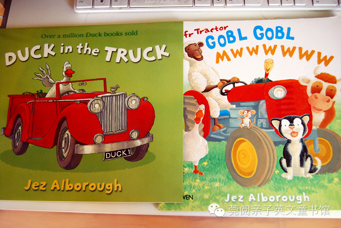 同样相当喜欢的名家JeZ Alborough,在创作时也有类似的风格。一本《DUCK in the TRUCK》,基本就是在和“UCK”这个发音较劲。看看这几句吧:“This is the Duck Driving home in a truck.This is the rock struck the truck.These are the feet which jump the Duck down into the muck......”文字虽然简洁,但是画面却很丰富,仔细看还会发现藏着好多小细节,看起来是相当地过瘾。JeZ Alborough的鸭子系列书都相当地出名,可惜,不好淘啊!要么淘不到,要么就太贵。。。。。在书市上看到一本他的新作《The Gobble Gobble Moooooo Tractor》,10元一本,也没细看,就兴奋地赶紧收了来,结果回家一翻,才发现,激动过头了,淘到的居然是一本西语版的,只看得懂图,看不懂文字。经米妈努力,对照着网上能搜寻到的图片和文字,对照之后,总算把大半的西语都找到了英文原文的翻译。只可惜,还是有几页找不着原文,哪位亲手上有这本书,麻烦帮个忙,发个英文版的文字给我啊!