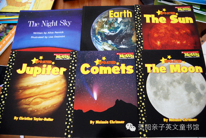 在书市上其中淘到一套关于宇宙的阅读书,包括月亮、太阳、地球等,相当喜欢啊!最主要是一本3.5元,嘿嘿。。。。。