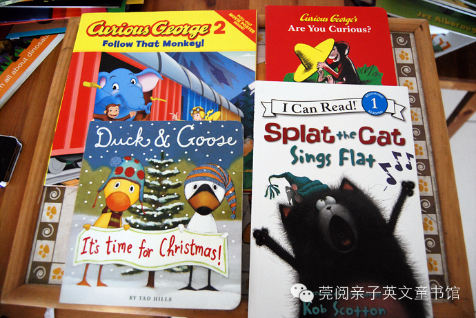 还有一些书,在中文绘本里可能看过,再看到有不同内容的英文版时,我也会毫不犹豫地淘。比如《好奇的乔治》《好友记》《啪嗒猫》等,尤其是小鸭和小鹅的故事,中文引进版只出了两本《好友记》,而一看英文书后的介绍,才知道原来这一套书还有很多很多啊!小米看到这些英文书时,就会忍不住惊喜,然后忙着把自己所有的中文版本找出来相对比。当然,为了省钱,如果内容是一样的,肯定就放弃了。