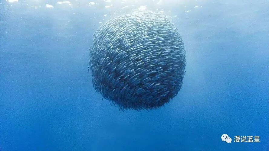 而为了应对天敌,沙丁鱼进化出了“集群”的生活方式。在日常生活中,沙丁鱼聚集成一个个直径达数十米的“鱼球”,每个“鱼球”中都有上万条沙丁鱼。它们动作整齐划一,共同移动,但还能保持近乎完美的球形。