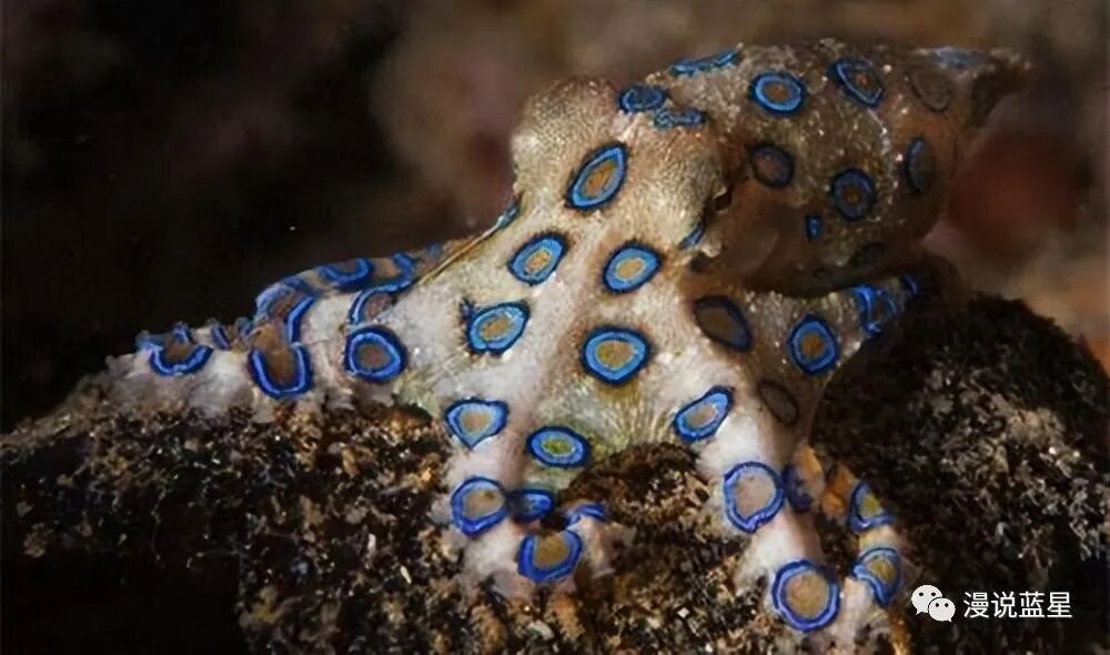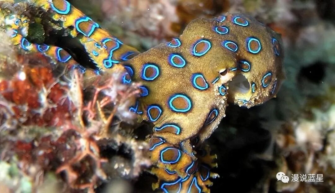 蓝环章鱼所分泌的毒素比氰化物致命一万倍,是“全球十大最毒动物”之一的剧毒生物,与箱型水母并称为两种最毒的海洋生物。目前还没有已知的抗毒血清适用。但幸运的是,蓝环章鱼生性胆小,其咬人致死的情况非常罕见,有记录的死亡案例仅寥寥数起。