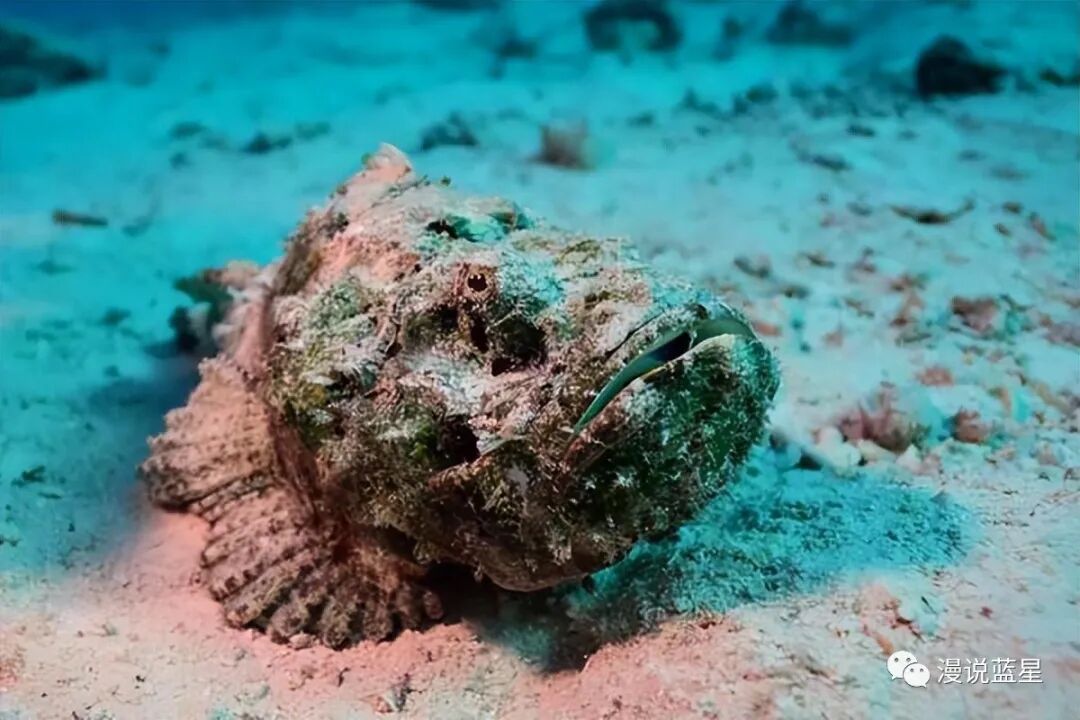 这种名字听起来普通的鱼其实非常不一般,是毒性最强的鱼之一。因为极善于伪装,能够轻松改变颜色和体形,模拟石头,因此得名。石头鱼腕足上有美丽的蓝色环节,遇到危险时,身上和爪上深色的环就会发出耀眼的蓝光,其毒性足以使一个成年人在几分钟内毙命,目前也没有解毒血清。