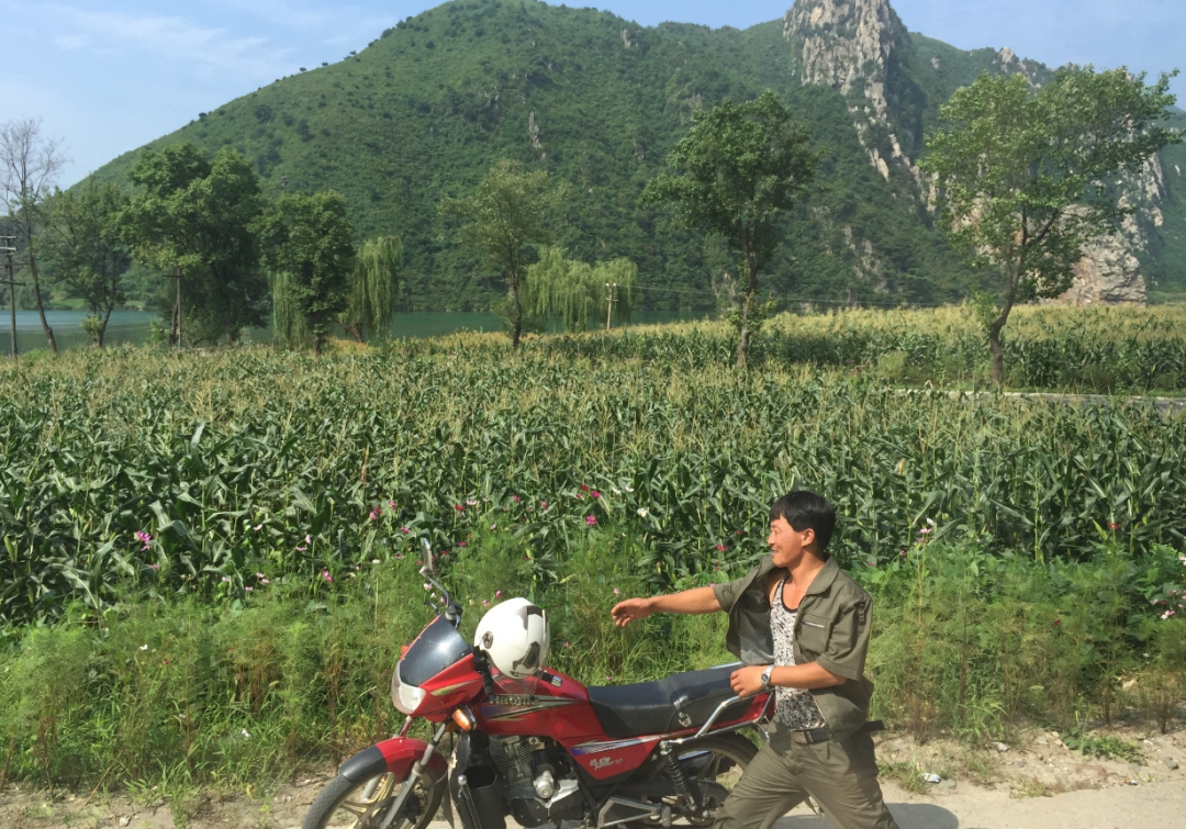 我跟李老道,我们先去买油,等会摆摊卖猪。李老道,我给你指路。在李老的指引下,我们开车来到一个偏僻的巷子,巷子人很少,没人摆摊,尽头是一片菜地,车辆无法通过。朝鲜的城镇就是这样的,时不时会出现菜地。