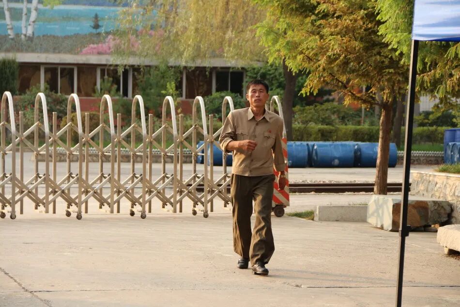 到达朝鲜餐厅后,郑世俊第一个向餐厅走去,我和老马紧随其后。和其他朝鲜餐厅一样,这家朝鲜餐厅的门口,站着一名穿朝鲜传统服装的迎宾,门楣上挂着朝鲜国旗。
