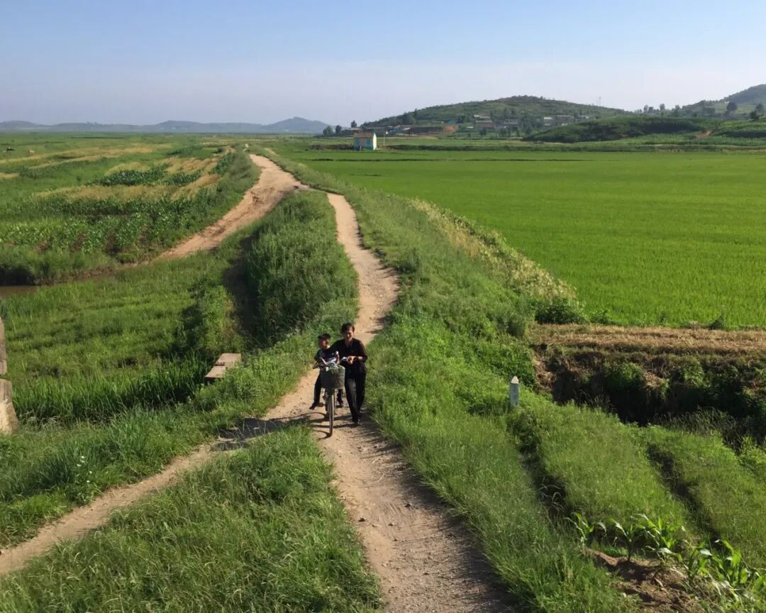 到林美恩所在村子的时候,已经下午四点多。雨停了,路边的水沟,水哗啦啦地流着。一群朝鲜小孩拿着网子,光着脚丫在沟边捉鱼。道路坑洼不平,汽车经过会溅起污水。我边欣赏着窗外风景,边开车向林美恩家前进。