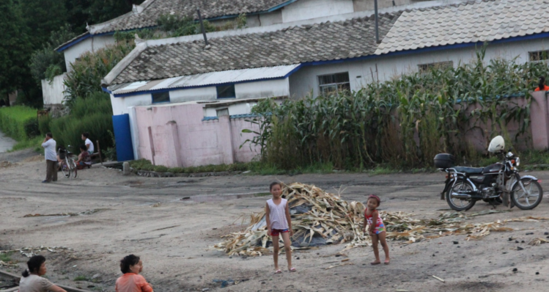 林美恩换下了白色的连衣裙和高跟凉鞋,穿上了褪色的花格子衬衫,黑色的长裤黑色的雨鞋,又粗又黑的鞭子甩在背后,整个人散发出淳朴的气息。林美恩离开后,我一个人在村里溜达,我平常很少起早床,今天起了个早,发现朝鲜乡村的清晨非常美好。