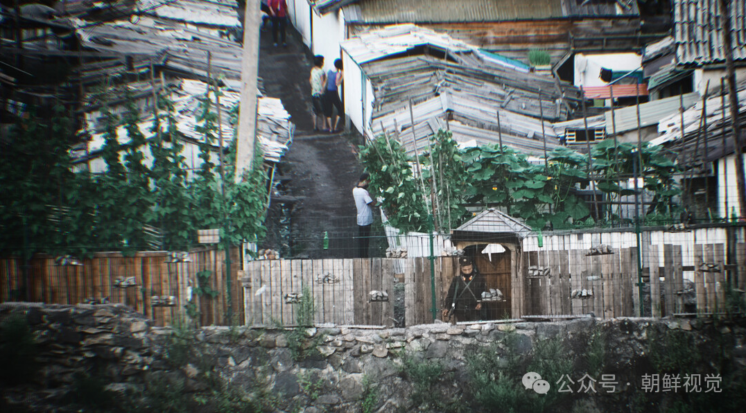 几分钟后,李珠美带我到了一个居民区。居民区由一排木板瓦房构成,每栋瓦房六七十个平方米。因为遭遇过洪涝侵袭,不少瓦房损坏严重。不少朝鲜男人光着膀子,在房顶忙碌,应该在修缮瓦房。女人们则多拎着水桶,在清洗屋子。