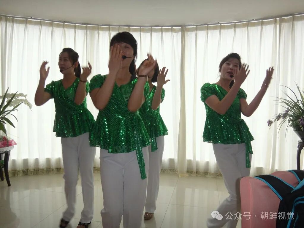林队长示意我在一旁等着,她上前和成员一番沟通后,彩排就开始了。表演主要以唱歌跳舞为主,配合乐器伴奏。以前到朝鲜餐厅吃饭时,经常能见到这样的歌舞表演,不过她们的水平比朝鲜餐厅歌舞水平高些,彩排持续了半个多小时,以朗诵《将军恩情还不完》结束。
