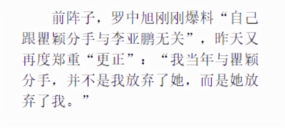罗中旭当时还说:“我当年和瞿颖分手,不是我放弃了她,而是她放弃了我。”