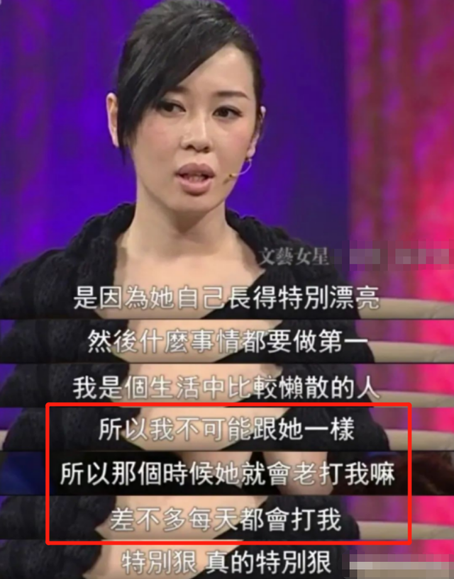 因为那时候经常不同父母的话,父母就经常责怪她,她后来还在节目中说起了这些往事:“我不可能跟她一样,所以那个时候她就会老打我,差不多每天都会打我。”