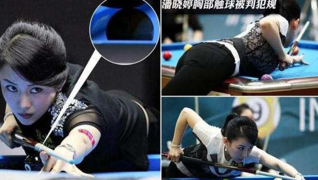 结果到了最关键一局的时候,潘晓婷俯身瞄准远处的六号球正准备开打时,裁判却突然宣布她胸部碰到了面前的九号球,犯规输掉了比赛。