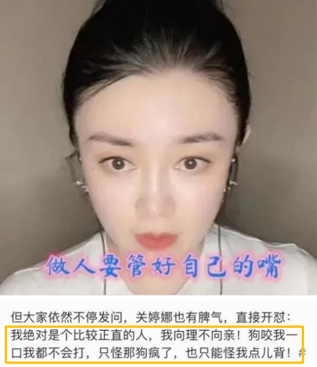 为此关婷娜只能亲自出面否认此事,说出了那一句:“狗咬我一口我都不会打,只怪那狗疯了,也只能怪我点儿背!”