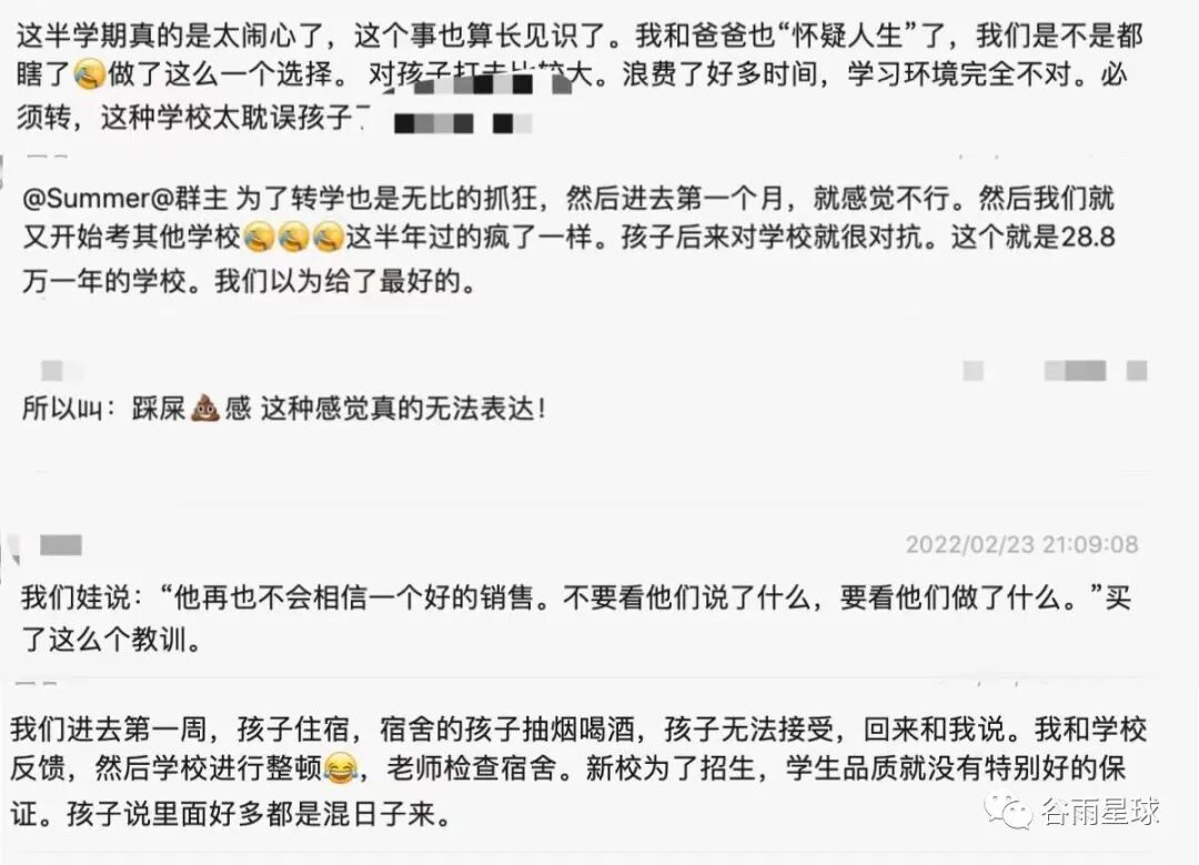 每年都家庭来吐槽入学后深感上当受骗,一年近30万的学费啥也没学到:“我再也不会相信任何一个销售,不要看他们说了什么,而是看做了什么。”