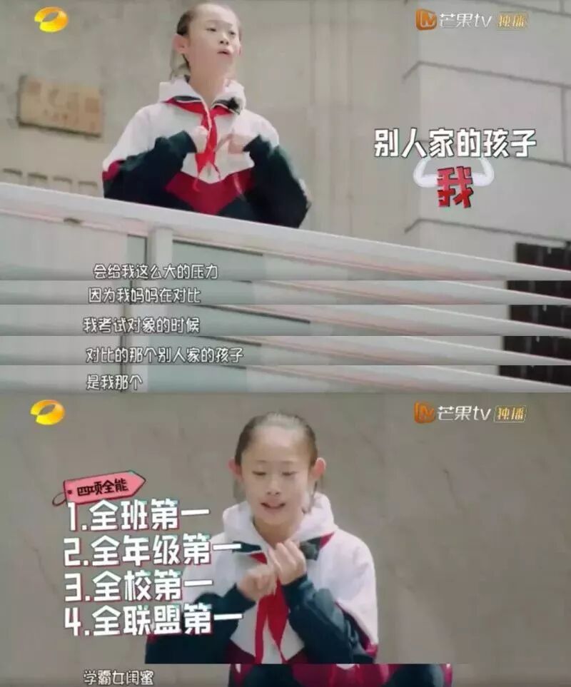 节目播出后,被评论较多的是第一期“别人家的孩子”那一段。初一女生璟颐,看上去是一个挺有表达欲、挺有自己想法的小姑娘。上台后,她说,妈妈总喜欢将自己和好朋友——那个“全年级第一、全校第一、全联盟第一的女生”相比。她希望妈妈明白“孩子不是只有别人家的好,你自己的孩子也很努力,为什么你不看一下呢?”妈妈回答,老说“别人家的孩子”,是因为她知道璟颐的性格,太多夸奖会“飘”,所以要时不时打压一下。但是璟颐明确说自己不适合激将法。