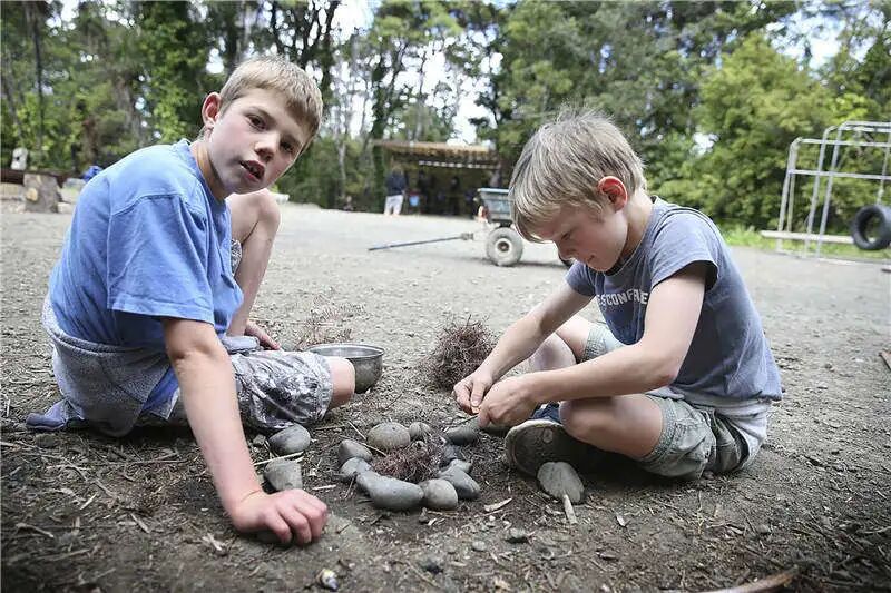在看似与自然更加密切的森林学校里,孩子们在人与人的关系上反倒学习了更多。北京人张宁在新西兰开办的绿野森林学校工作,每个假期都会带一帮孩子去野外露营数日。孩子们不但要学会野外生存技能,享受大自然的魅力,更重要的是磨炼自己的意志,并且思考自己在团队中所该承担的责任和对待他人的态度。
