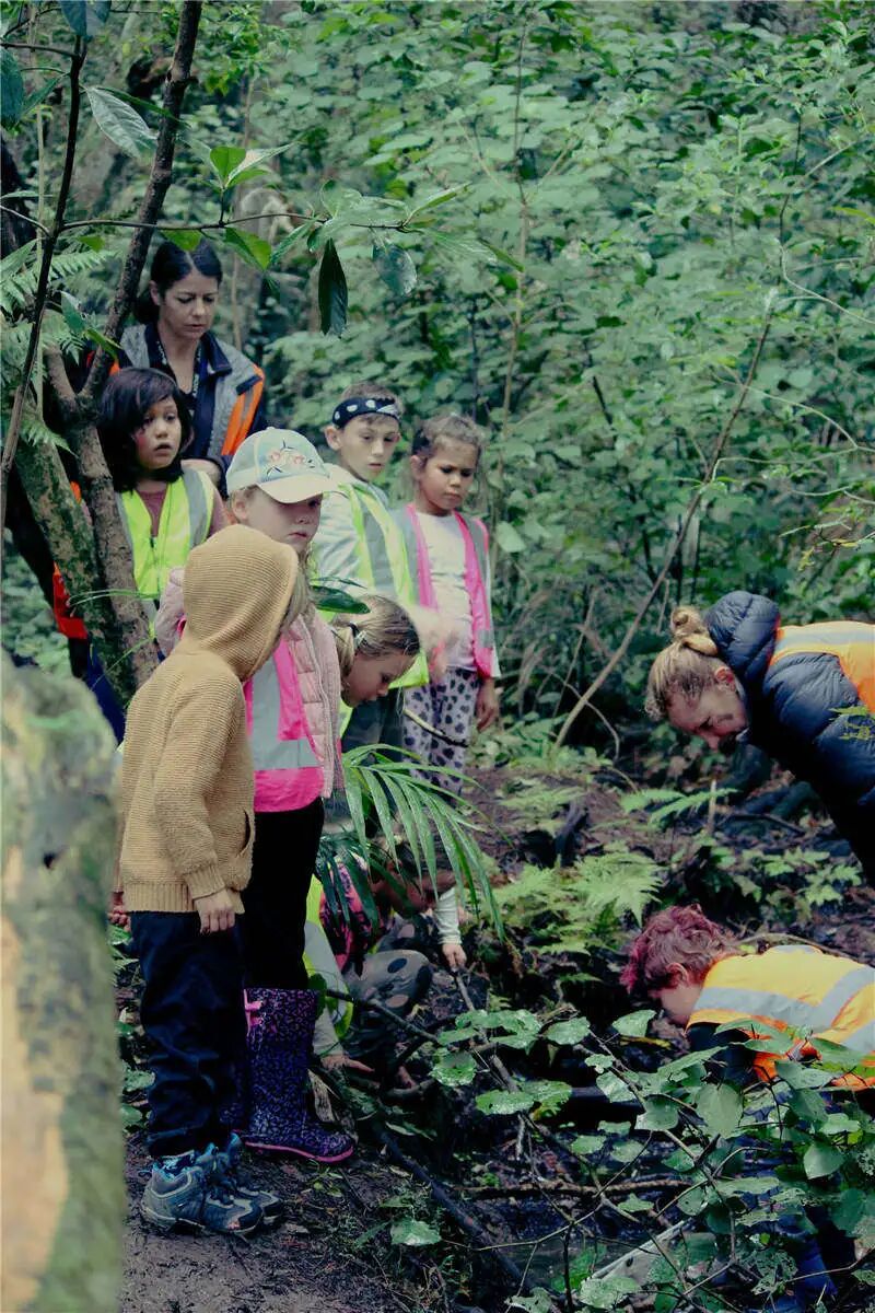 孩子们虽然是在树林中自由玩耍,但很有分寸感。克劳迪娅说,进入森林的第一课就是要学会尊重,尽量只拿地上已经死掉的树枝,跟鳗鱼们玩可以,有一次孩子们还用水桶捞到了一条,但必须马上把它放回水里去。如果需要从树上取材也不是完全禁止。两个女孩想用一种宽大厚实的长形叶子做编织,克劳迪娅会按照当地土著毛利人的习俗,念一段毛利语的祷告,感谢自然之神给予人的物产,接着再用小刀小心地割下树叶,同样用仪式感来教育孩子们学会尊重和敬畏。