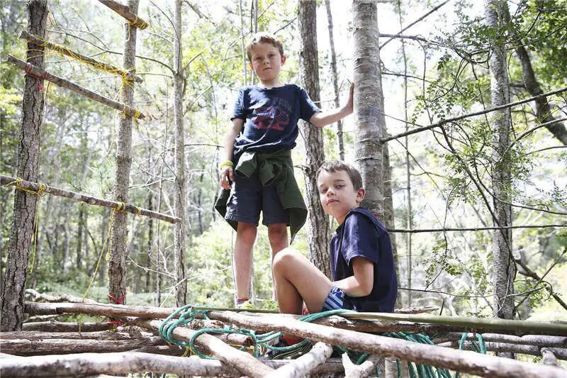 明明就在北岸知名的健身中心和地区橄榄球俱乐部的后面,但一踏进这座参天大树密布的史密斯丛林,仿佛就进入了隔音保护罩,只听得溪流淙淙而过的温柔声音。孩子们先跟老师克劳迪娅一起,在丛林中的“营地”里铺好几块塑料布,方便放书包和坐卧,再在两棵榉树中间挂上一席吊床,接着就可以自由活动了。