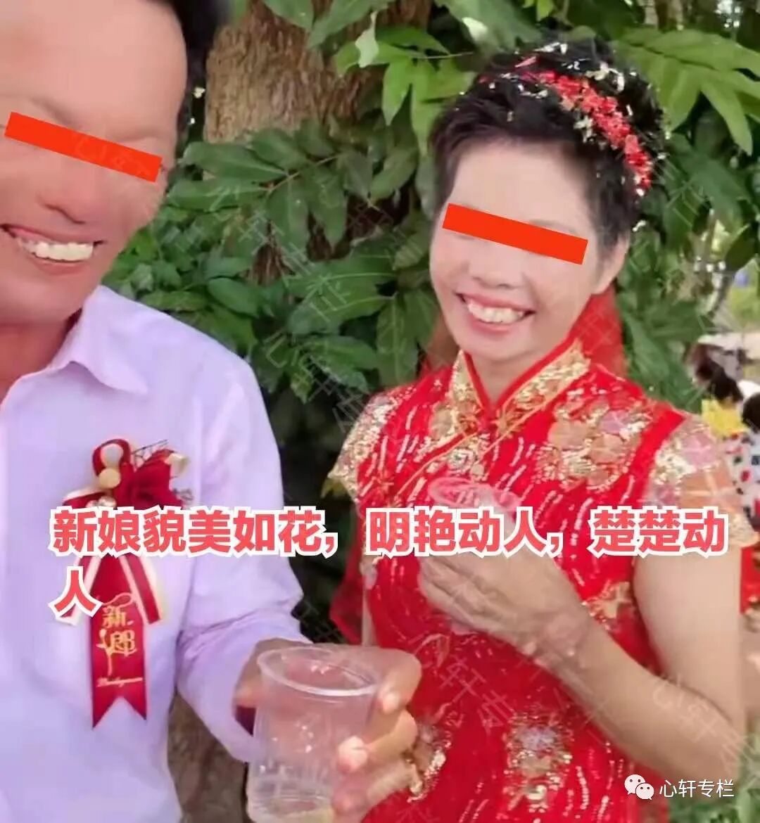 广东湛江一名57岁男子娶了一位29岁女子,两人很般配,很有夫妻相,为了目睹这一“美好时刻”,男子所在村庄的同村人,都放假回家看他们拜堂。