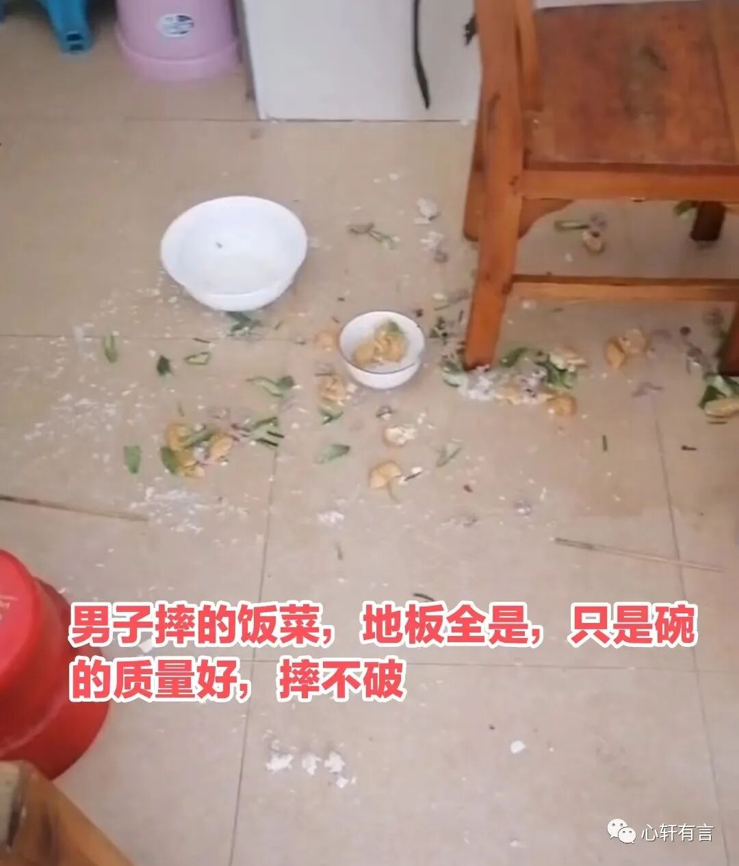 然而,这一次不知因何缘故,下班买菜回家煮饭的她,她的丈夫则嫌弃她做饭慢,生气将已经煮好的饭摔在地上,虽然没有摔破碗,但是地板上面的全是饭和菜,一片狼藉。