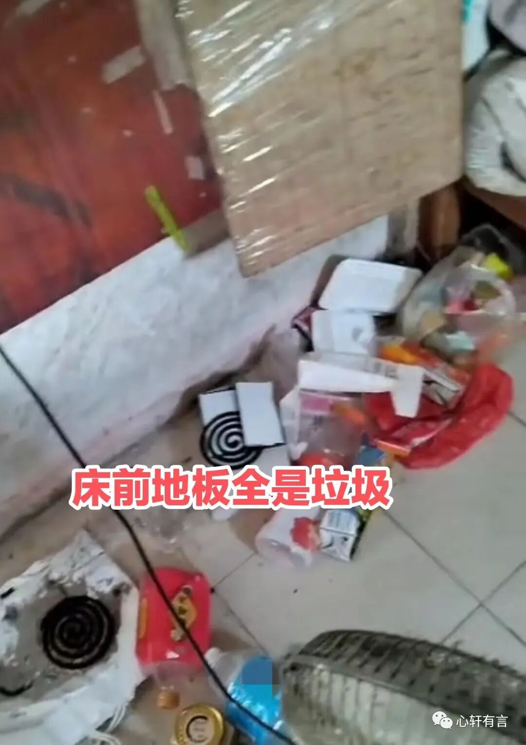 这名女子每隔一段时间就去看望自己的儿子一次,但每去看望一次,她都生气一次,因为,每一次去,家里垃圾到处都有,甚至她儿子需要换洗的衣服都没洗,都积压在床上。