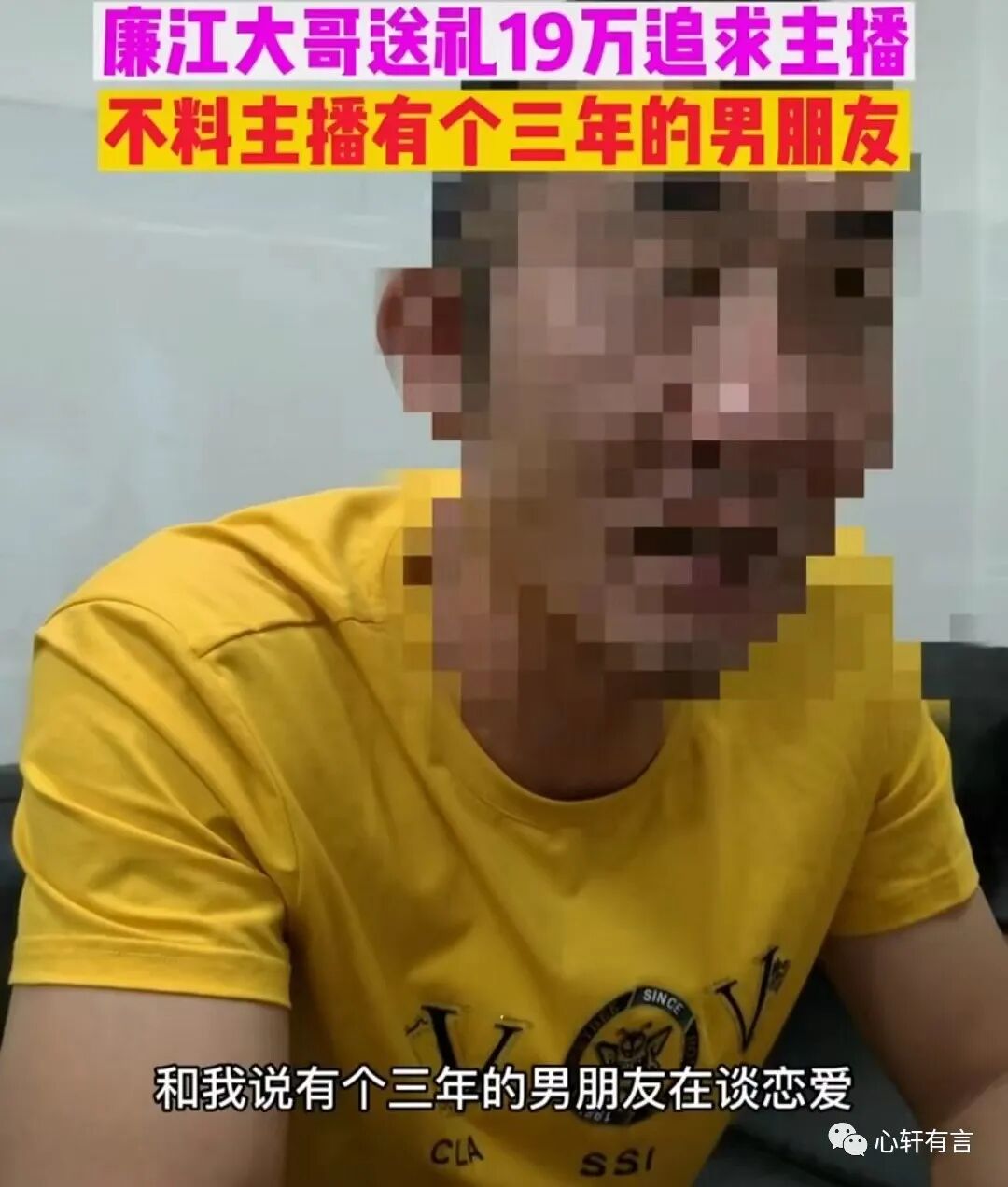 近日,广东廉江一名男子现身于网络讲述自己为一名女主播打赏和送礼加起来19万,送了个四月的汤后,本以为可以俩个人共沫爱情时,却还是发现自己被骗了。
