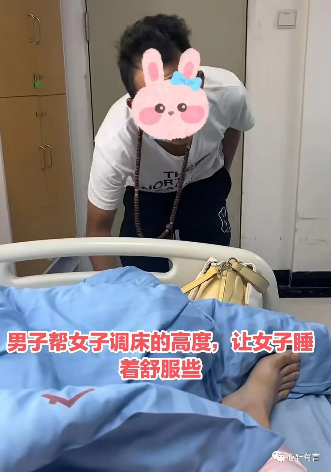 其实,女子住院这6天,男子在这6天,每天都照顾她一日三餐外,还为她买夜宵,甚到在住院期间,还为她端尿包,在医院病房陪她的时候,他的手机都是静音状态,怕吵醒了她。