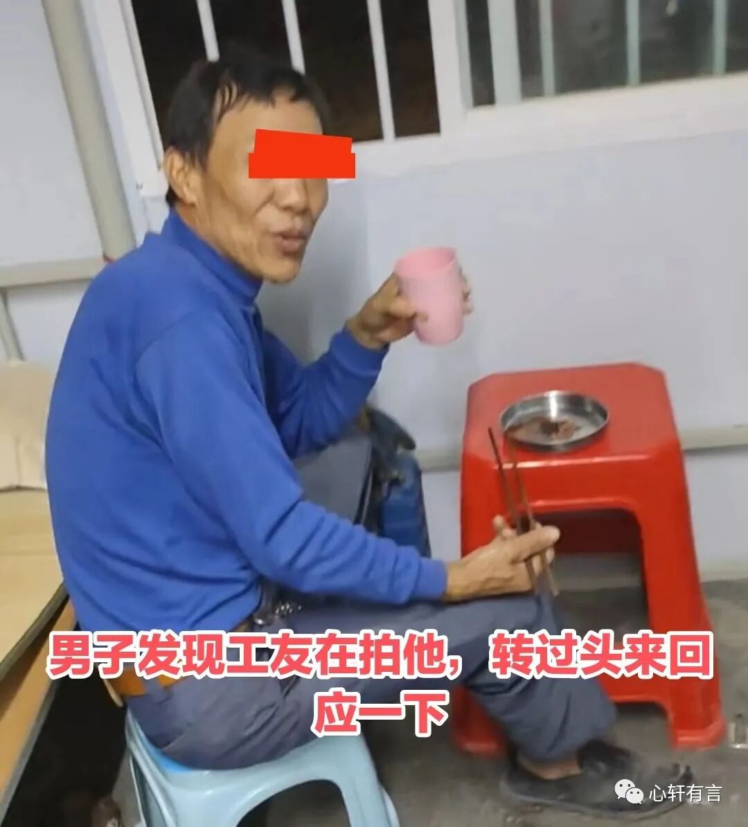 拍这名男子喝酒的拍摄者,是这名男子的工友,也这名男子同一个宿舍休息。