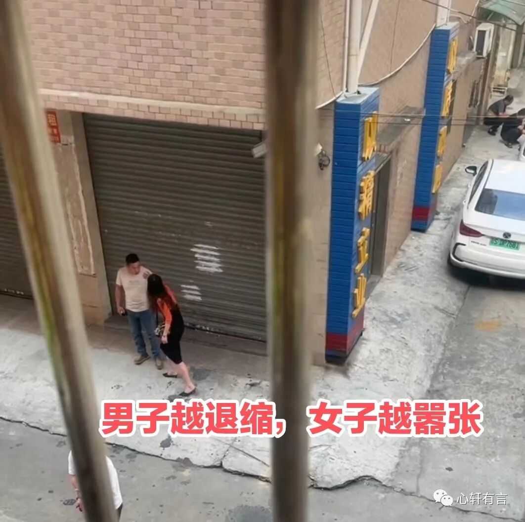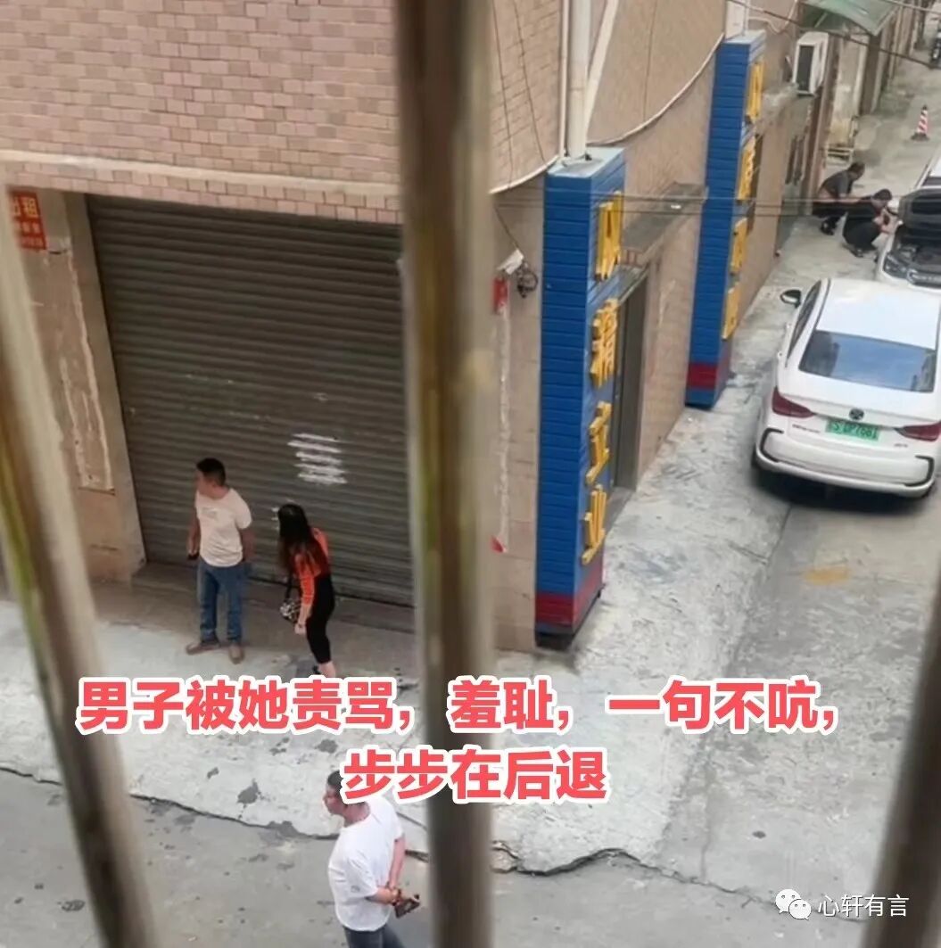 那位穿着很朴素的男子,被这名女子责骂一句不吭,步步后退,不敢反驳半句。