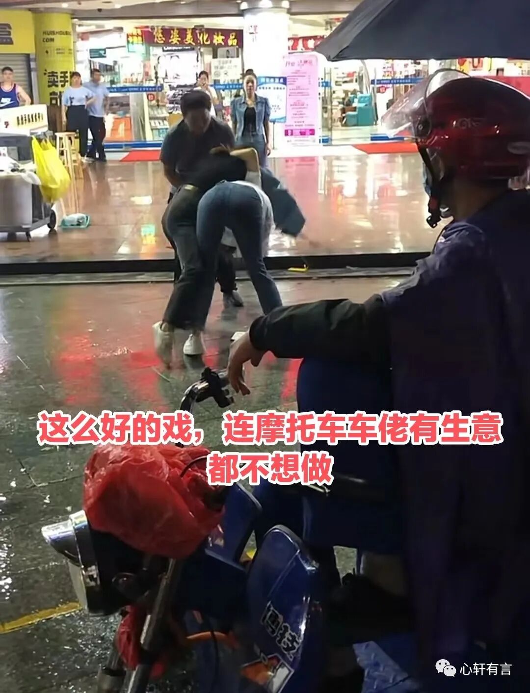 让人出丑的这一幕,竟发生在人流比较多的一个商场门口,虽然下着毛毛雨,但围观者也众多。