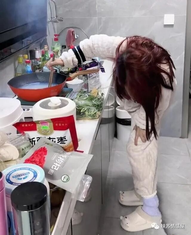 看到老公和婆婆的态度,女子的心里感到发凉,一时之间语塞,竟不知用什么语气去回怼他们,只能艰难地给他们母子做饭。
