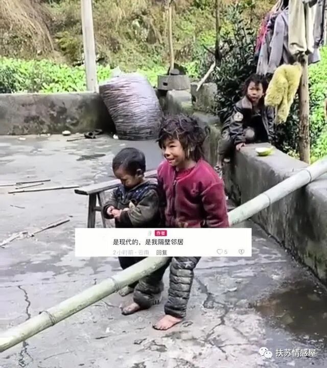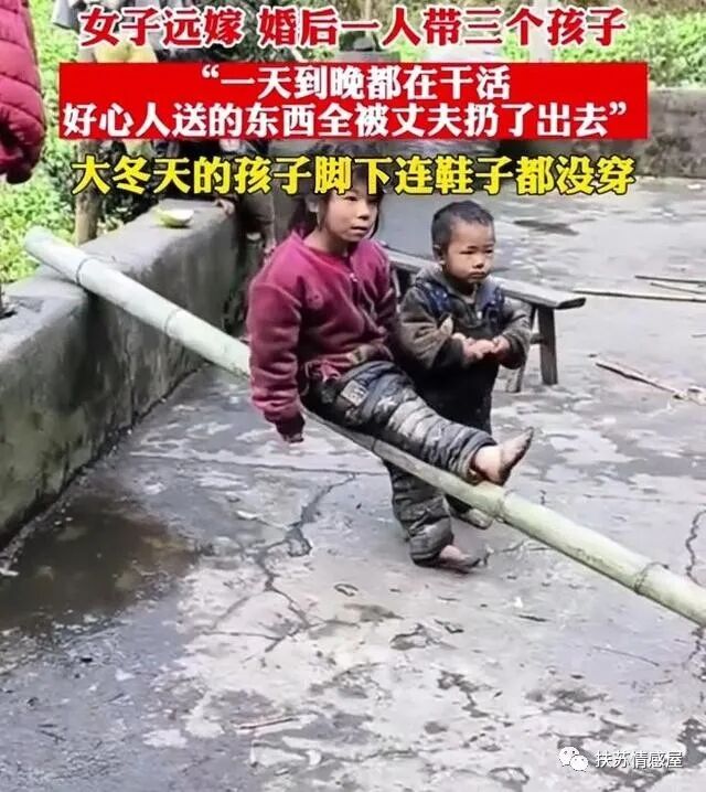 冬天来了,天气也比较冷,男人都拿不出钱给孩子买衣服,整天穿得脏兮兮的,大冬天鞋子都没有,几个孩子就赤脚在院子里玩。