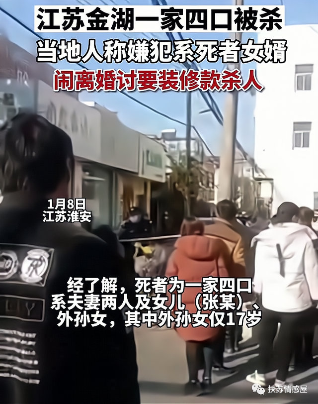 近日,江苏淮安金湖县发生了一起灭门惨案,一家四口被杀害,最小的死者年仅17岁,引发全社会网友关注。