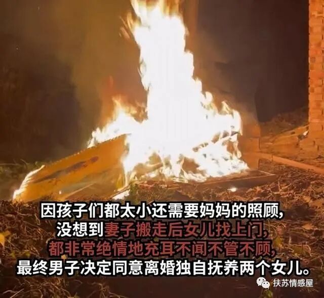男子见无法挽回,就回到家中翻出两人的婚纱照,还有女子留在家中的衣服,全部都付之一炬烧掉。