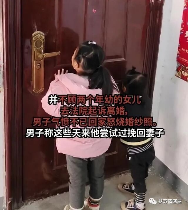 两个女儿不停地呼唤妈妈,里面却没有任何回应,过了许久,男子才失魂落魄地带着一对女儿离开。