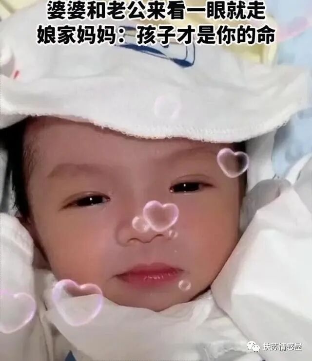 住院以后,老公工作比较忙,婆婆又要在家照顾两个女儿,几乎都是娘家妈妈在照顾,得知女子生下孩子后婆家就来看。
