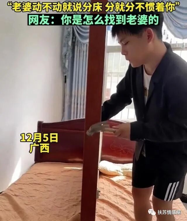 妻子一吵架就说分床睡,男子一气之下用门板把床从中间隔开,网友:也是个狠人