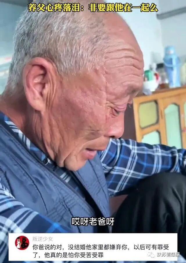 男友家人离开以后,养父就在那里不停地抹眼泪,女儿见状,急忙跟自己养父道歉,说这一切并不怪你,都是我自己的问题,是我不听你的话。