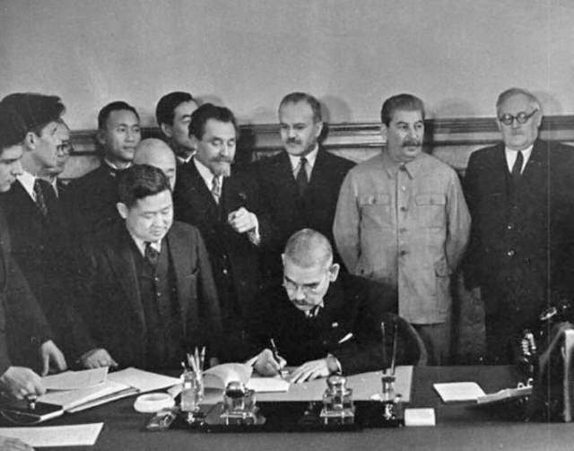 只是,这种合作又是短暂且脆弱的。到了中国抗战的中期,苏联为了维护自身利益,背着中国与日本签订了《苏日中立条约》,迫使中国陷入更加艰难的境地。