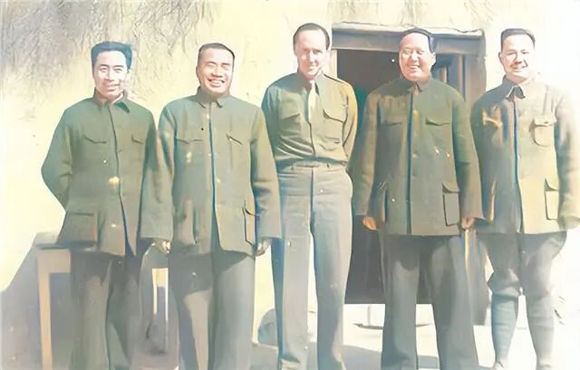 这次延安之旅,让戴维斯惊喜连连,他与延安的领导们有着说不完的话题。在高兴之余,大家一拍即合,还留下了一张珍贵的合影。照片里,戴维斯站立在中央,他的两侧分别是毛主席和朱老总,而在照片的最左边和最右边则是周总理和叶大帅。